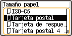 Aparece la pantalla para especificar el tamaño y el tipo de papel.