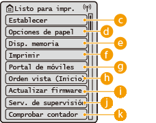 <Opciones de funciones>, <Preferencias>, y muchas otras configuraciones del equipo se inician desde este botón. Configuración/Registro