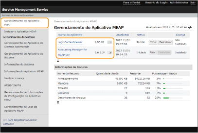 Clique em [MEAP Application Management] e clique no aplicativo cuja licença deseja gerenciar.