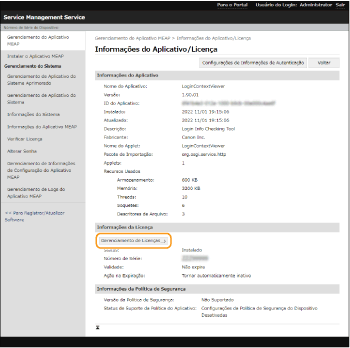 Clique em [License Management] e realize a operação desejada.
