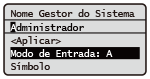 Você também pode selecionar <Modo de Entrada> e pressionar para trocar o tipo de texto. |