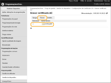Clique em [Escolher Arquivo], especifique o arquivo (certificado CA) que será instalado e clique em [Iniciar Instalação].