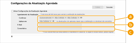 Marque a caixa de seleção como [Ativar Configurações da Atualização Agendada] e defina as configurações necessárias.