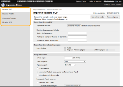 insira a senha em [Senha do Documento]. Ao imprimir arquivos PDF conectados ao servidor de diretrizes, selecione [Especificar ficheiro PDF]