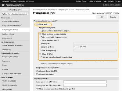 Selecione [Utilizar IPv6] e configure as definições requeridas.