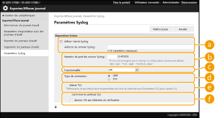Un léger décalage survient après l'erreur de certains journaux d'audit car la transmission Syslog est effectuée après une interrogation d'environ 30 secondes. Les RFC pris en charge sont : 5424 (format Syslog), 5425 (TLS) et 5426 (UDP). |
