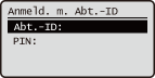 Wenn die Verwaltung per Abteilungs-ID nicht implementiert istWenn nur die Systemmanager-ID und die PIN ohne Verwaltung per Abteilungs-ID festgelegt sind, müssen Sie den Anmeldevorgang nur ausführen, wenn Sie eine Einstellung vornehmen möchten, die Zugriffsrechte des Systemadministrators erfordert. Geben Sie die ID und PIN in <ID Systemmanager> und <Systemmanager PIN> ein, und drücken Sie . |