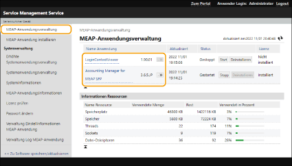 Klicken Sie auf [MEAP-Anwendungsverwaltung], und klicken Sie auf die Anwendung, um die Lizenz zu verwalten.