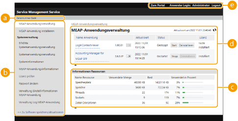 [Systemanwendungsverwaltung] | Startet und stoppt die Nutzung der installierten Systemanwendungen. Die Änderung der SMS-Anmeldemethode wird über diese Seite ausgeführt. |