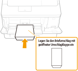 Legen Sie die Briefumschläge hochkant (mit der kurzen Seite zum Gerät hin) und mit der klebstofffreien Seite (Vorderseite) nach unten weisend ein. Sie können die Rückseite von Briefumschlägen nicht bedrucken.