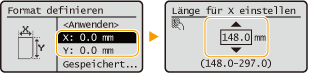 | Wählen Sie <X> oder <Y>, um die Länge der einzelnen Seiten mit den Zahlentasten oder mit  /  festzulegen. |