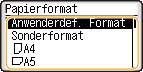 Wenn Papier im anwenderdefinierten Format eingelegt wird