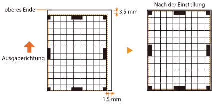 Da im folgenden Beispiel die Druckposition um 3,5 mm nach oben und 1,5 mm nach rechts verschoben werden soll, geben Sie -3,5 mm in vertikaler Richtung und +1,5 mm in horizontaler Richtung an.