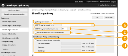 Aktivieren Sie das Kontrollkästchen [Proxy verwenden], und legen Sie die erforderlichen Einstellungen fest.