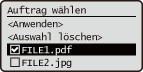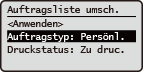 (Stopp) drücken und den abzubrechenden Auftrag aus der Druckauftragsliste auswählen.