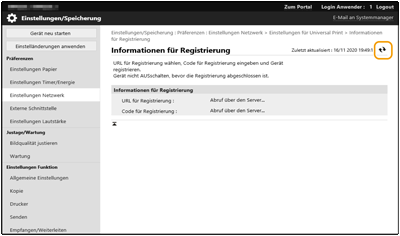Klicken Sie auf den URL-Link, der für [URL für Registrierung] angezeigt wird.