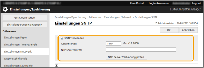 Wählen Sie [SNTP verwenden] und legen Sie die erforderlichen Einstellungen fest.