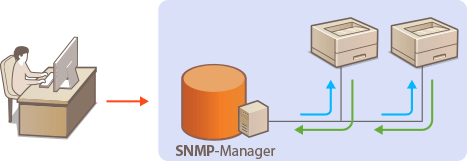 Mit SNMP können die Druckerverwaltungsinformationen, wie z. B. Druckprotokolle und Druckanschlüsse, überwacht und regelmäßig von einem Computer im Netzwerk abgerufen werden.