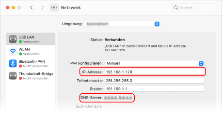 Anzeige der IP-Adresse und des DNS-Servers