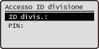 Quando la Gestione ID divisione non è implementataQuando sono impostati solo ID gestore di sistema e PIN senza Gestione ID divisione, occorre effettuare l'accesso alla macchina solo quando si desidera configurare le impostazioni che richiedono l'autorità di amministratore. Immettere ID e PIN in <ID gestore sistema> e <PIN gestore sistema>, quindi premere . |