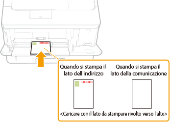 Questa sezione descrive come caricare le cartoline con l'orientamento corretto, nonché le procedure da seguire prima di caricare le cartoline. Per una descrizione della procedura generale di caricamento delle cartoline nel vassoio multiuso, vedere Metodo base per il caricamento della carta. |