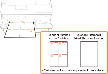 Prima di caricare le cartoline, eseguire alcune operazioni preparatorie, come appiattire eventuali arricciature. Prestare inoltre attenzione all’orientamento delle cartoline e al lato da posizionare rivolto verso l’alto. Tenere presente che nel cassetto carta non è possibile caricare né buste né cartoline.