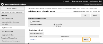 [Filtro in uscita] o [Filtro in ingresso] per [Filtro indirizzi IPv4]/[Filtro indirizzi IPv6].