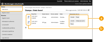 Avviare la IU remota [Monitoraggio stato/Annulla]  [Registro lavori]