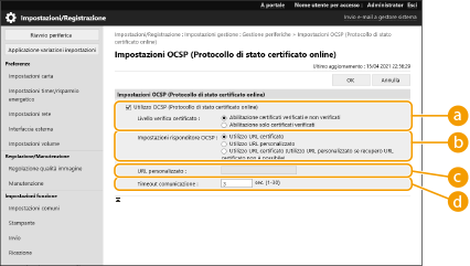 Fare clic su [Gestione periferiche]  [Impostazioni OCSP (Protocollo di stato certificato online)].