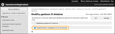 Selezionare questa casella di controllo per accettare lavori di stampa dai driver di stampanti che non supportano la Gestione ID divisione.