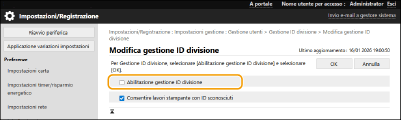 Selezionare [Abilitazione gestione ID divisione].