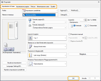 Specificare le impostazioni di stampa secondo le necessità e fare clic su [OK].