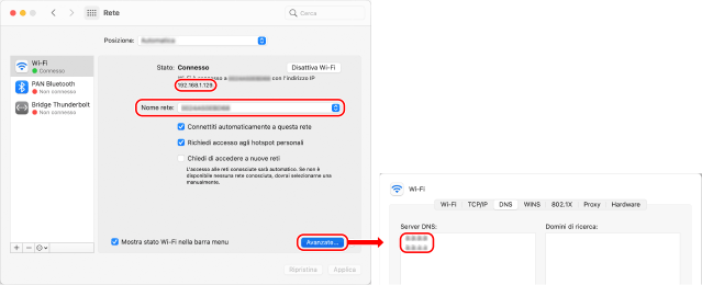 Fare clic su [Avanzate] e visualizzare il server DNS nella scheda [DNS].