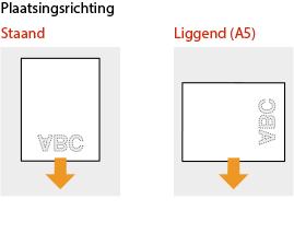 De manier van plaatsen hangt af van het feit of de afdrukstand van het papier met logo liggend of staand is.