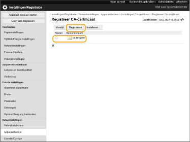 Selecteer het CA-certificaat dat u wilt registreren, en klik op [Registreren].