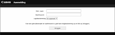 Log uit nadat u klaar bent met de Remote UI (UI op afstand). Als u de Remote UI (UI op afstand) afsluit zonder uit te loggen, kan de volgende keer dat u zich aanmeldt, lang duren.