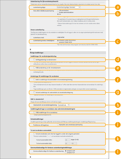 Konfiguration av detaljerade inställningar för autentiseringsfunktioner