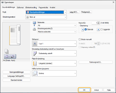Ange utskriftsinställningarna efter behov och klicka på [OK].
