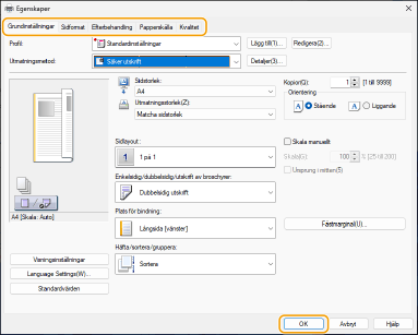 Ange utskriftsinställningarna efter behov och klicka på [OK].