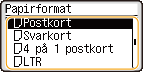 1 | Vælg typen af postkort. | Hvis du vil udskrive på begge sider af postkortet, skal du først udskrive på den ene side, og derefter udskrive på den anden side. Før du lægger portkortet i, skal du udjævne eventuelle krøller på dem. |