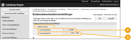 Vælg [Aktivér lockout], og konfigurér de detaljerede indstillinger.
