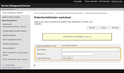 MEAP-sovelluksen todennustietojen määrittäminen