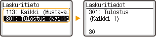 Jos haluat lisätietoja aiheesta <Valvontapalvelu>, ota yhteys jälleenmyyjään tai huoltoedustajaan. Voit tulostaa luettelon, josta näkyy tulostuksessa käytettyjen sivujen lukumäärä. Luovutusraportti  <Laskuriraportti> Jos haluat lisätietoja laskennan ehdoista, ota yhteyttä jälleenmyyjään tai huoltoedustajaan. |