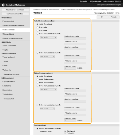 Valitse [Verkkoasetukset]  [IPSec-asetukset].