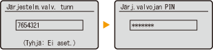 Aseta järjestelmänvalvojan tunnus ja järjestelmänvalvojan PIN-koodi.