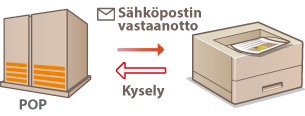 Jos laitteelle lähetetään sähköpostia SMTP:n välityksellä, laite tulostaa sähköpostit heti niiden vastaanottamisen jälkeen. Ota tämä toiminto käyttöön, jos haluat lähettää faksiasiakirjat Canon-monitoimitulostimista edelleen tälle laitteelle ja tulostaa ne laitteelta.
