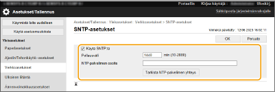 Valitse [Käytä SNTP:tä] ja määrittele tarvittavat asetukset.