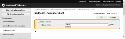 Rastita valintaruutu, jotta voit asettaa laitteen vastaamaan laitehallintaohjelmiston ryhmälähetyksen hakupaketteihin ja ottamaan käyttöön laitteenhallintaohjelmalla tapahtuvan valvonnan.