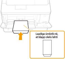 Asetage ümbrikud paberisahtlisse või universaalsalve. Ümbrike printimisel siluge paberiummistuste vältimiseks enne nende laadimist kõik kortsud. Kontrollige ka ümbrike paigutussuunda ja seda, kumb pool on üleval. Arvestage, et ümbrikke ja postkaarte ei tohi asetada paberisahtlisse.