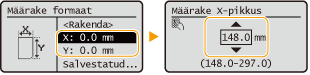 | Valige <X> või <Y>, et määrata vastava külje pikkus numbriklahvide või  /  abil. |